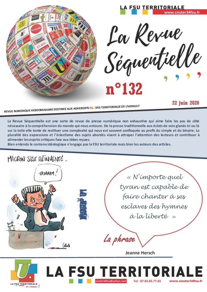 Vous trouverez ci-dessous le lien de téléchargement de la revue séquentielle n°132, la revue de presse à destination des adhérents de la FSU Territoriale de l’Hérault, avec au sommaire :