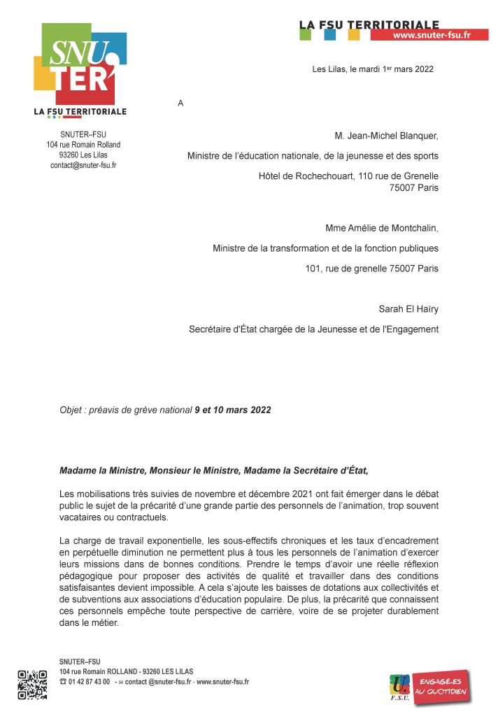 la FSU Territoriale dépose le présent préavis de grève, pour les mercredi 9 et jeudi 10