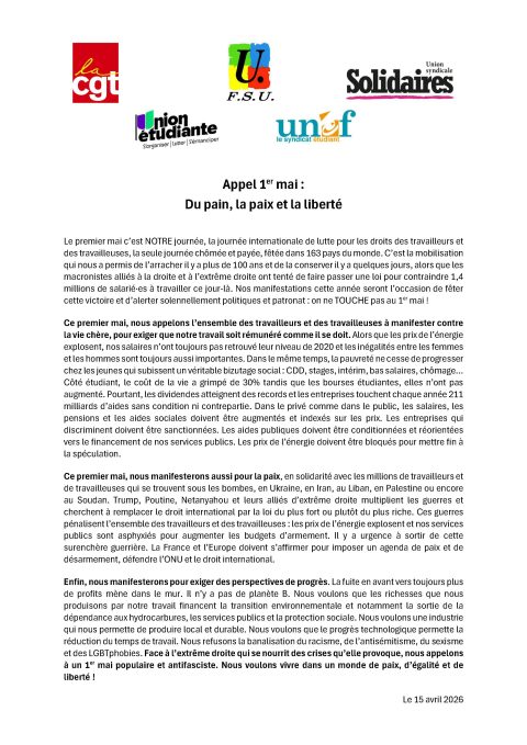 Communiqué de presse de l’intersyndicale nationale du 13 avril 2026