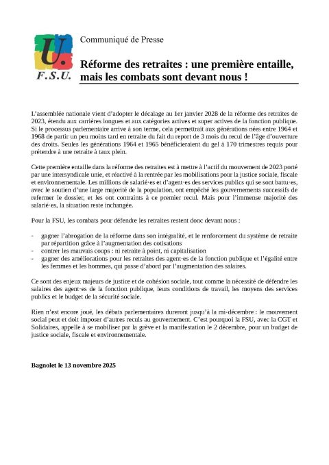 Pour la FSU, les combats pour défendre les retraites restent donc devant nous :