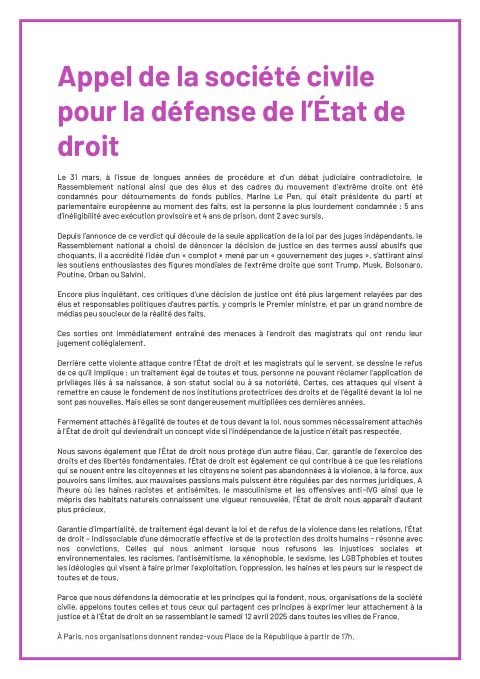 12 avril 2025 : Appel de la société civile pour la défense de l’État de droit