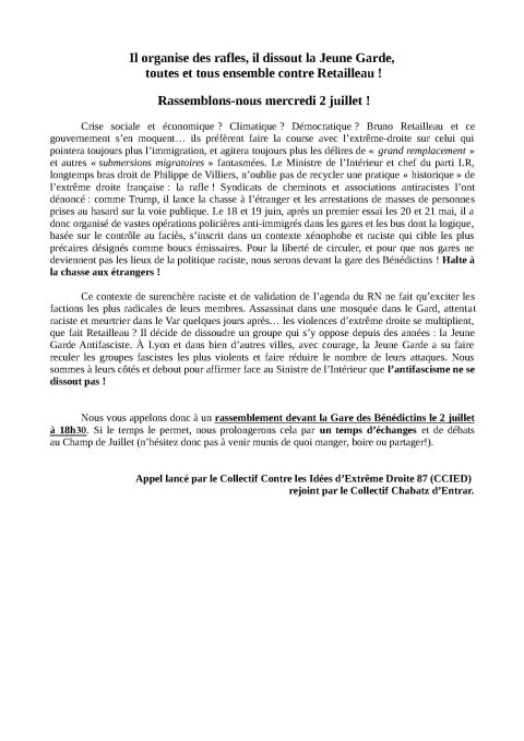 Appel lancé par le Collectif Contre les Idées d’Extrême Droite 87 (CCIED)