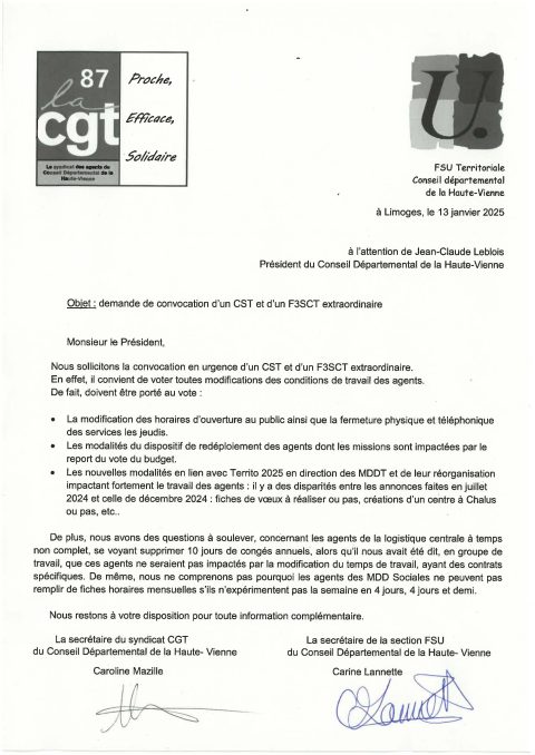 Demande de convocation d’un CST et d’un F3SCT extraordinaire
