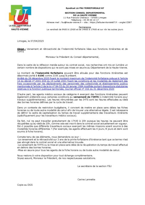 Courrier au Président du Conseil Départemental de la Haute-Vienne.