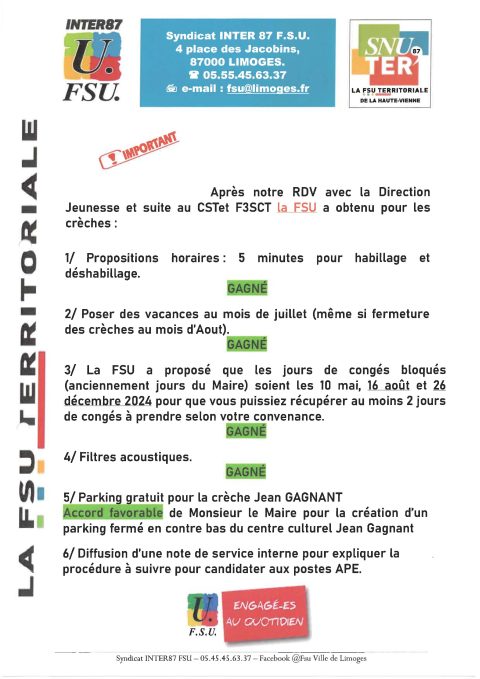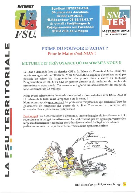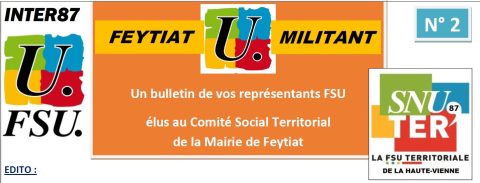 Journal de la section SNUTER-FSU de la Mairie de FEYTIAT, « FEYTIAT U MILITANT» n°2 de janvier 2024.