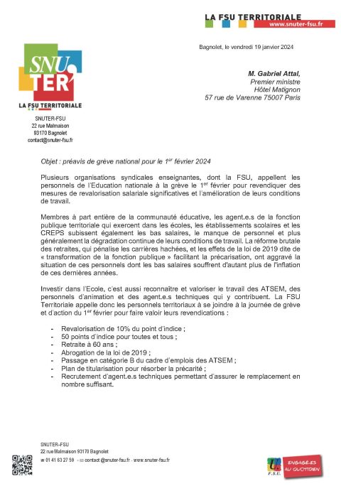 La FSU appelle d’ores et déjà à se mobiliser par des manifestations contre la loi immigration les 14 et 21 janvier, par la grève dans l’Éducation le 1er février, par la grève féministe et les actions en faveur de l’égalité professionnelle le 8 mars et en préparant une action de l’ensemble de la Fonction publique au mois de mars.
