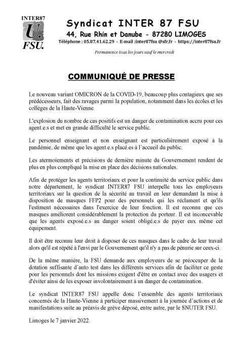 Communiqué de presse du 07/01/2022
